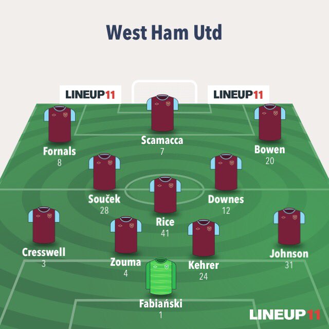 Liverpool f.c. vs West Ham lineups